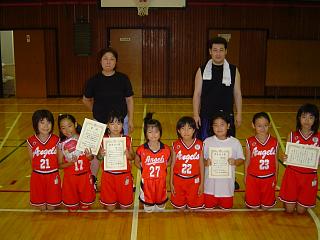 photo4. アローも接戦の末、2戦全勝!  photo5. 選手宣誓のカナチャン!カッコいいね! photo6. フリースロー大会・優秀選手の個人賞      受賞!(アユミ・カナ・メリサ)