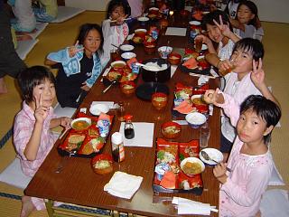 photo1. おにぎり最高! photo2. 全日本選手のクリニック受講! photo3. 夕食たくさん食べたかな?